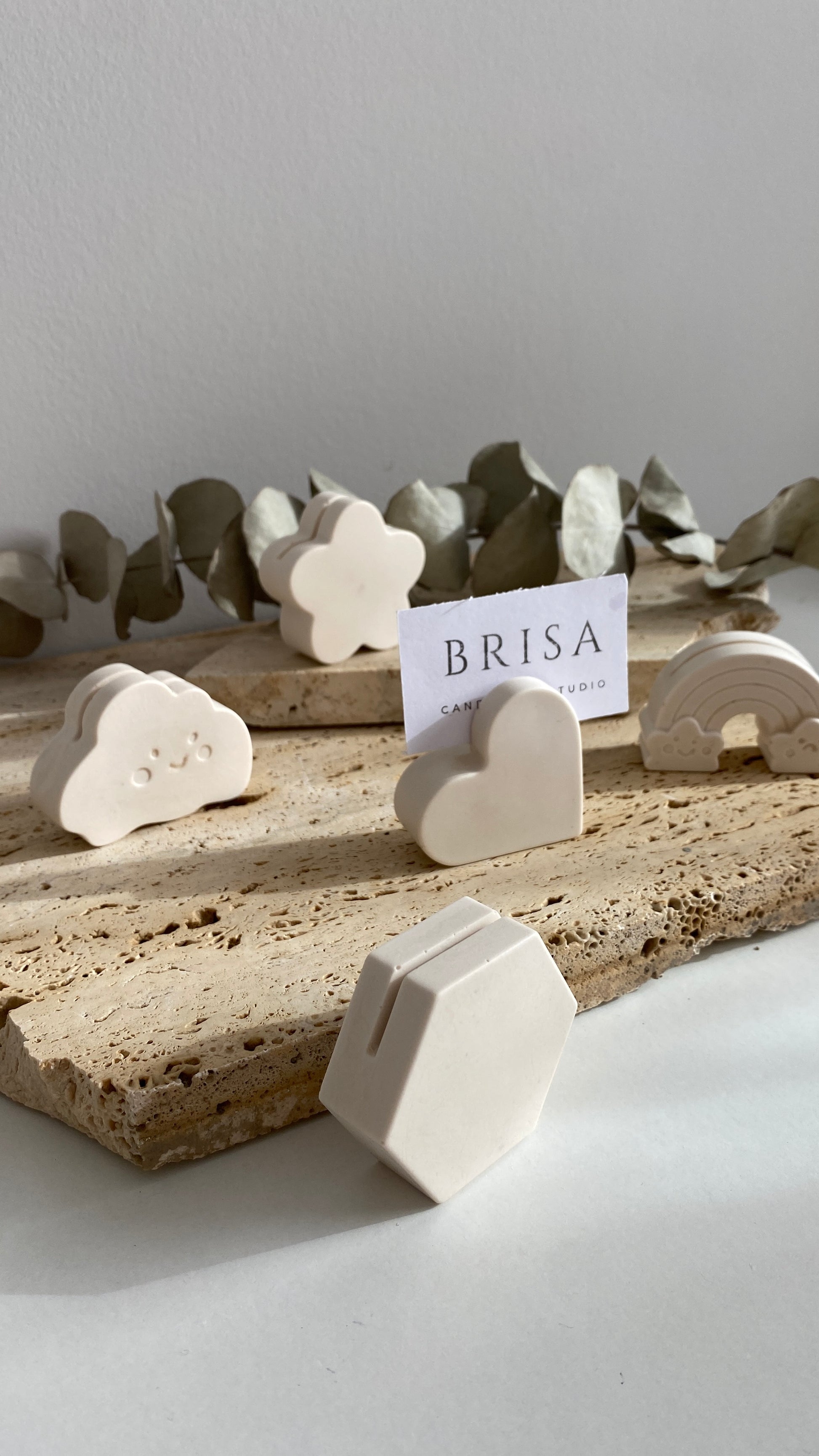 Estos soportes para fotos o tarjetas, disponibles en cinco formas diferentes, son el detalle perfecto para dar vida a tus recuerdos. Pequeños, minimalistas y con mucho estilo, se integran con armonía en cualquier rincón de tu hogar. Ideales para añadir un toque personal sin romper la calma del espacio.
